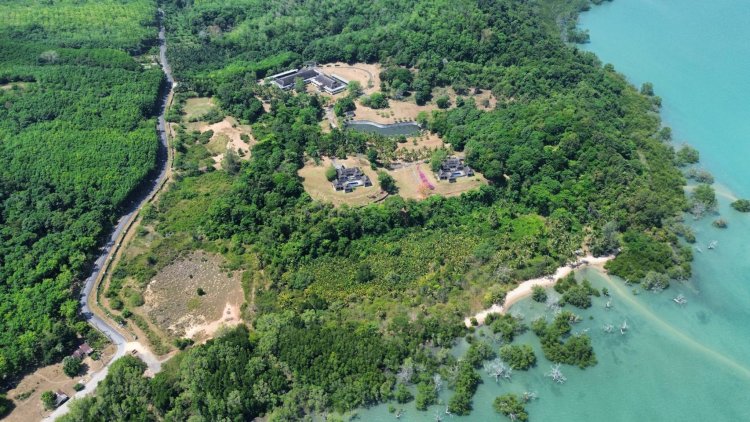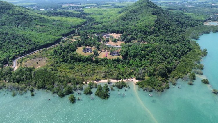 Land connected by the sea 621 meters with private sand beach 160 meters and connected public road 420 meters. Generally, land shape is hilly can see the limestone of Phangnga Bay. potential: Originally used as a factory for RADI medical supplies, the main building spans over 2700 sqm and presents versatile options for conversion, such as a hotel, school, or conference/wellness center. The property features two luxurious 4-bedroom villas, each showcasing private pools and breathtaking ocean vistas across spacious 579 sqm layouts. With a total land area of 102 rai or around 45 Acres, the property is subdividable into 5 plots, ideal for luxury villa developments or other upscale projects. Positioned in an idyllic location offering spectacular water views, sailing, and boating opportunities, including access to the renowned fishing paradises and stunning islands of Phang Nga Bay. Possibilities abound for development, including a marina, wellness center, beach front resort, or international school.