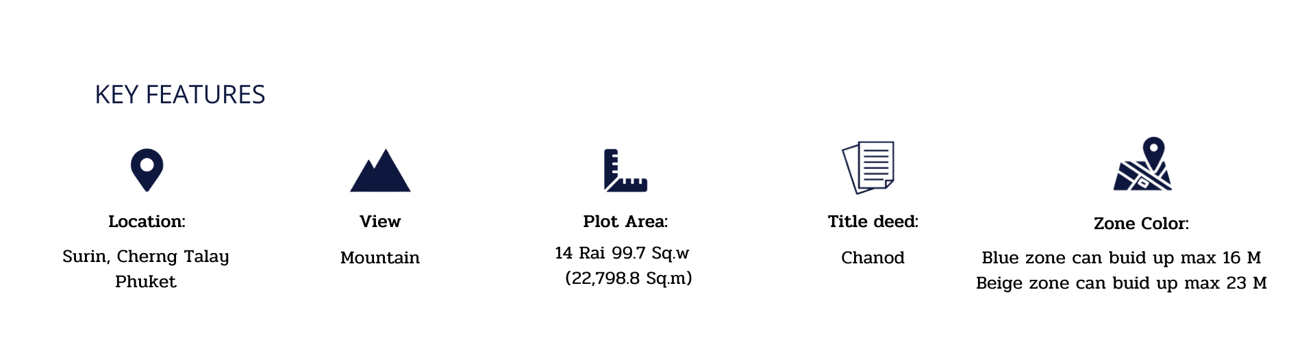 LAND FOR SALE : 14 Rai 99.7 Sq.w (22,798.8 Sq.m) Located in Surin, Phuket