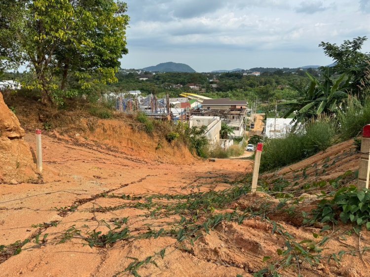 Land for sale 2 rai 2 ngan 46.4 square wa, title deed, beautiful view, Rawai location, only 10 minutes from Rawai Beach, surrounded by villas. Can be built 6-12 meters high, suitable for building villas, houses with an entrance road.