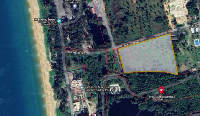 Land 8 Rai (12,800 Sq.m) is located on Maikhao, Thalang District, Phuket. Land plot close to beach only 200 m. walk. Next to public road and Maikhao beach. Invest personal resident and villa.