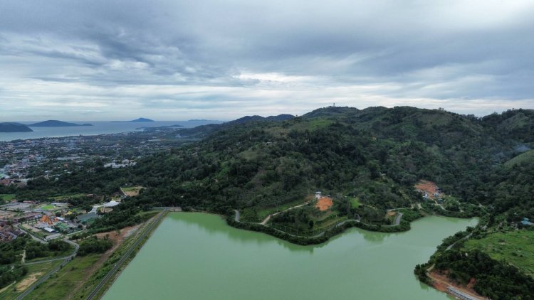 "For Sale: Prime land in Chalong – 4 rai 3 ngan 34.5 sq.wah. Tranquil location with public road access, perfect for a villa or private residence up to 8 meters high. Enjoy stunning reservoir, city, and mountain views."