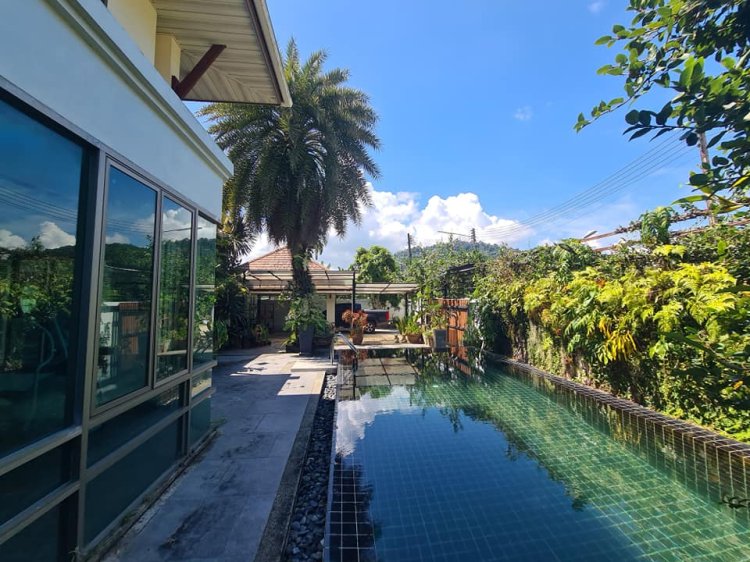 For rent, 2-story detached house, pool villa, prime location in Phuket town. Away from the old town, Thalang Road, Central Phuket Shopping Center. Just less than 10 minutes by car.