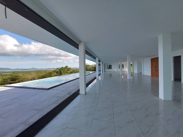 This house was designed especially but unfortunately, the hotel business didn't go according to plan and we have to sell it. It's a big mansion, it has 8 bedrooms, 13 bathrooms, 3 kitchens, maid quarter, 25 meters infinity pool, lots of terraces, balconies, parking space for 4 cars, amazing views to Ao Por and Yamu